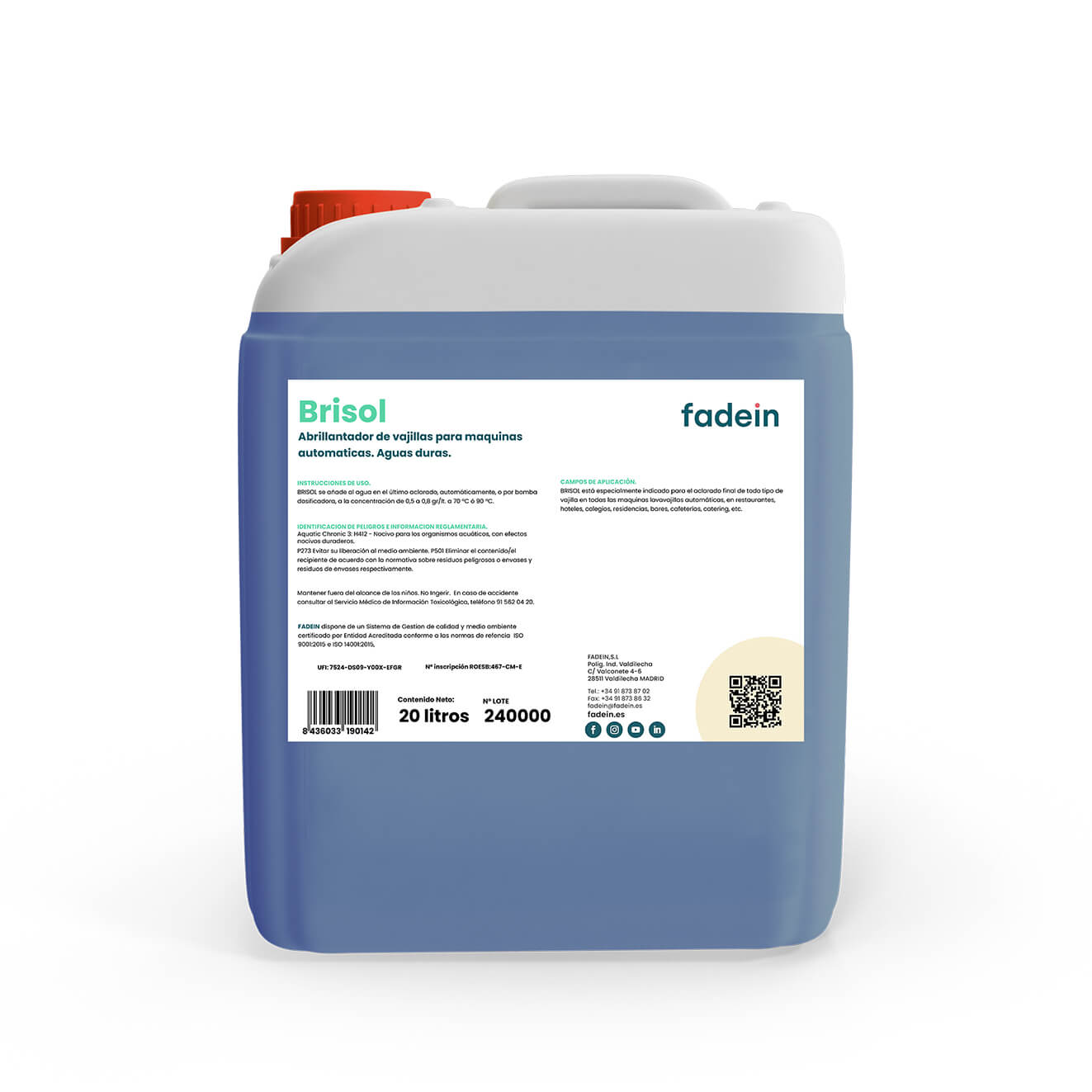 Está especialmente indicado para el aclarado final de todo tipo de vajilla en todas las maquinas lavavajillas automáticas, en restaurantes, hoteles, colegios, residencias, bares, cafeterías, catering, etc.