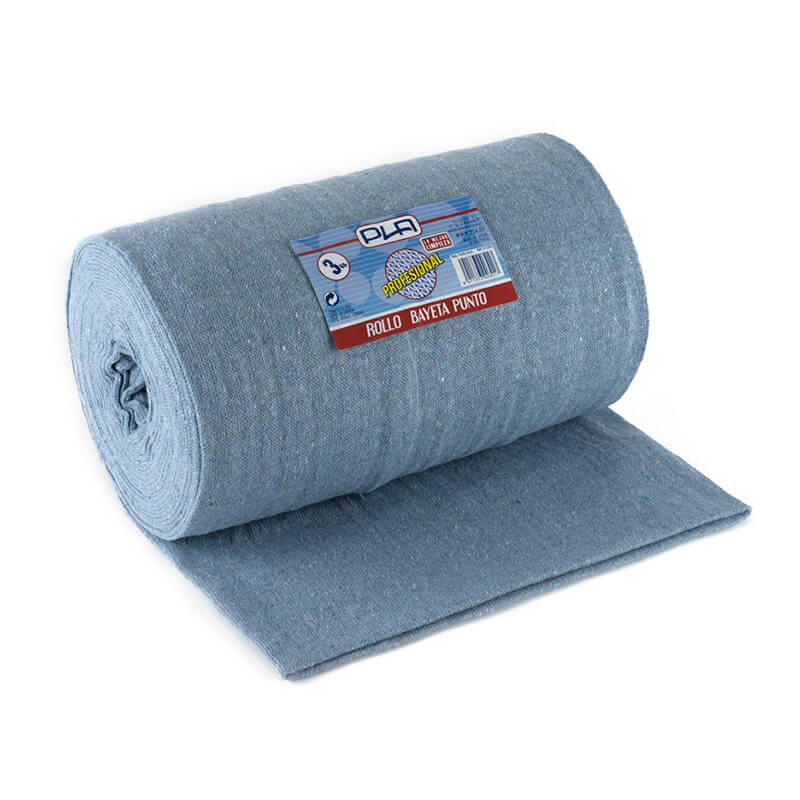 Bayeta de punto en rollo, compuesta por tejido doble, en un 80% es de algodón y en un 20% es de fibras diversas, consiguiendo así un gran poder de absorción, delicada con las superficies, gran resistencia en el arrastre de suciedades y máxima duración.