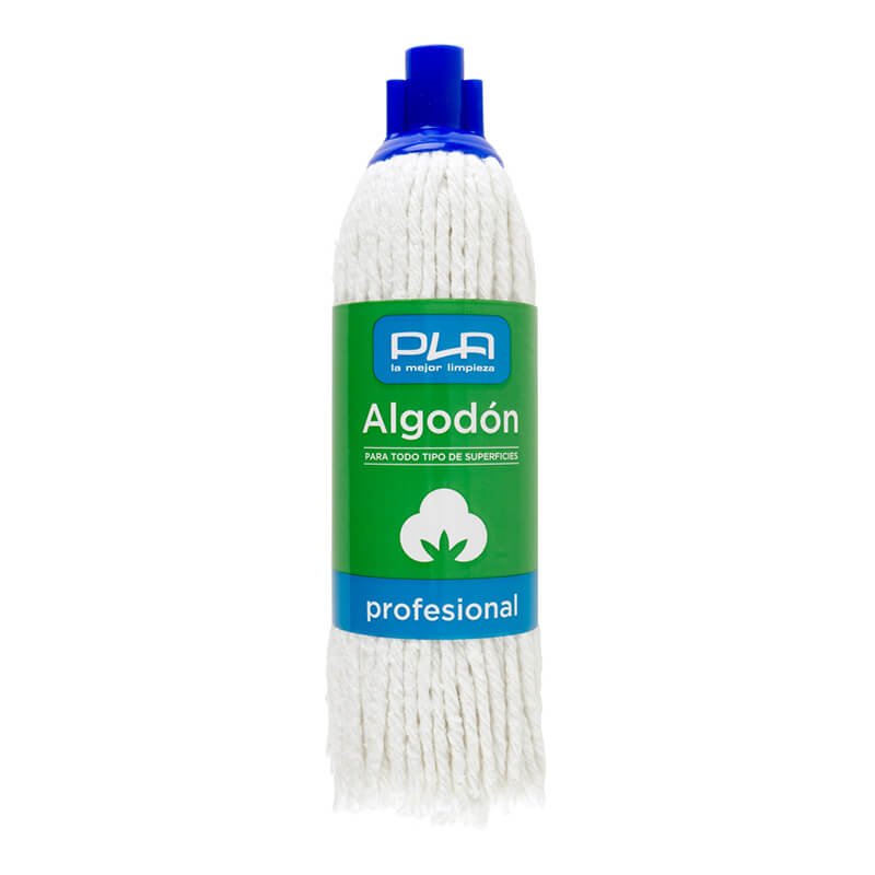 Fregona algodón blanco extra 220 gr. Composición: 90% algodón 10% otras fibras. Fáciles de usar y muy efectivas, las fregonas de lavado PLA destacan por su excepcional longevidad y excelente desempeño en todo tipo de superficies. Fabricadas en 90% algodón 220gr. Para su uso es necesario fijar a un mango de aluminio (no suministrados).